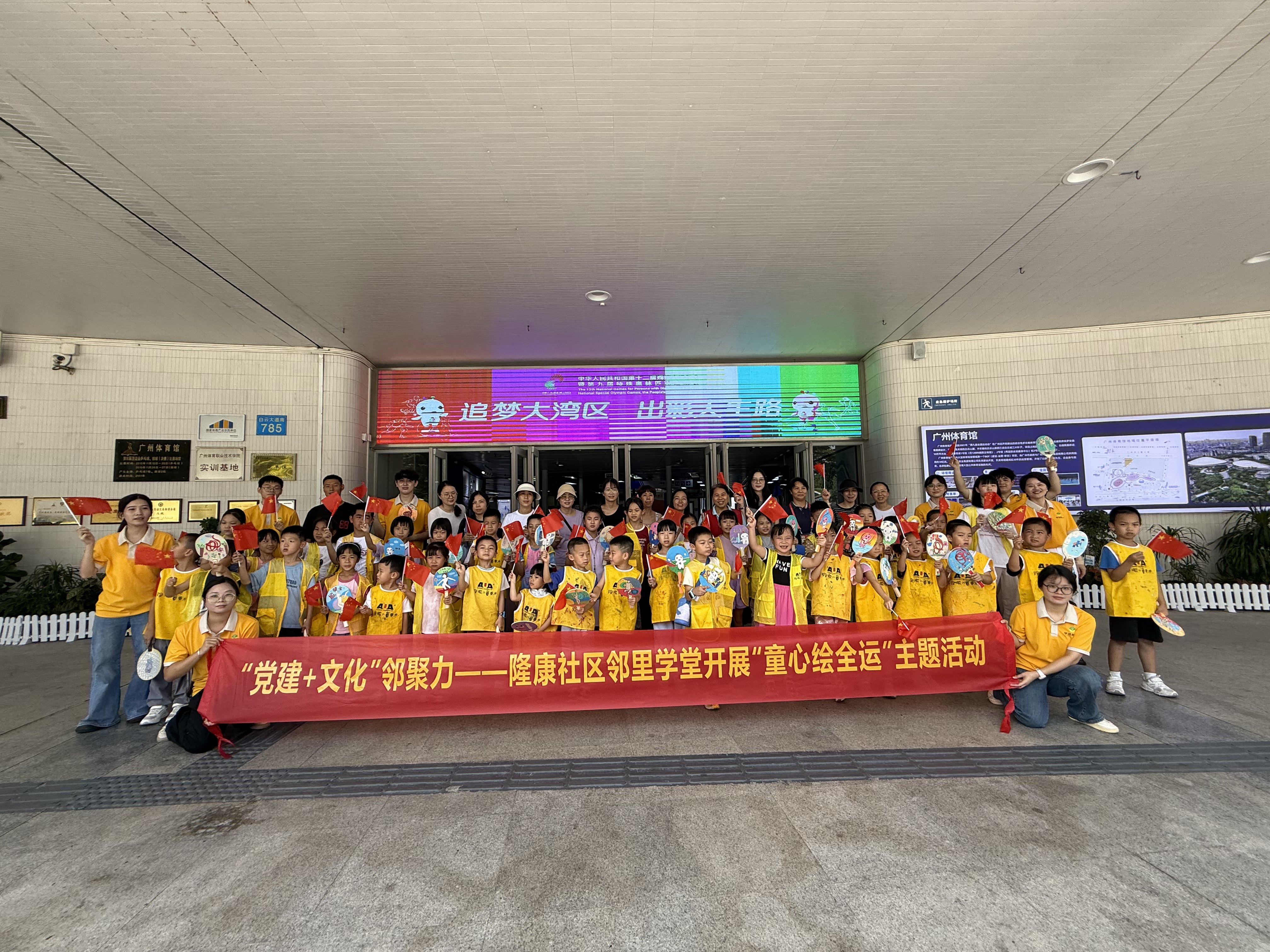 为热烈庆祝第十五届全国运动会的盛大开幕,积极营造“全民全运广发E配,同心同行”的浓厚社区氛围,同时进一步丰富社区青少年儿童的课余文化生活,激发其艺术创造力与爱国爱乡情怀,白云区景泰街隆康社区大党委于2025年10月3日成功举办了“‘党建+文化’邻聚力——‘童心绘全运’”主题绘画活动。