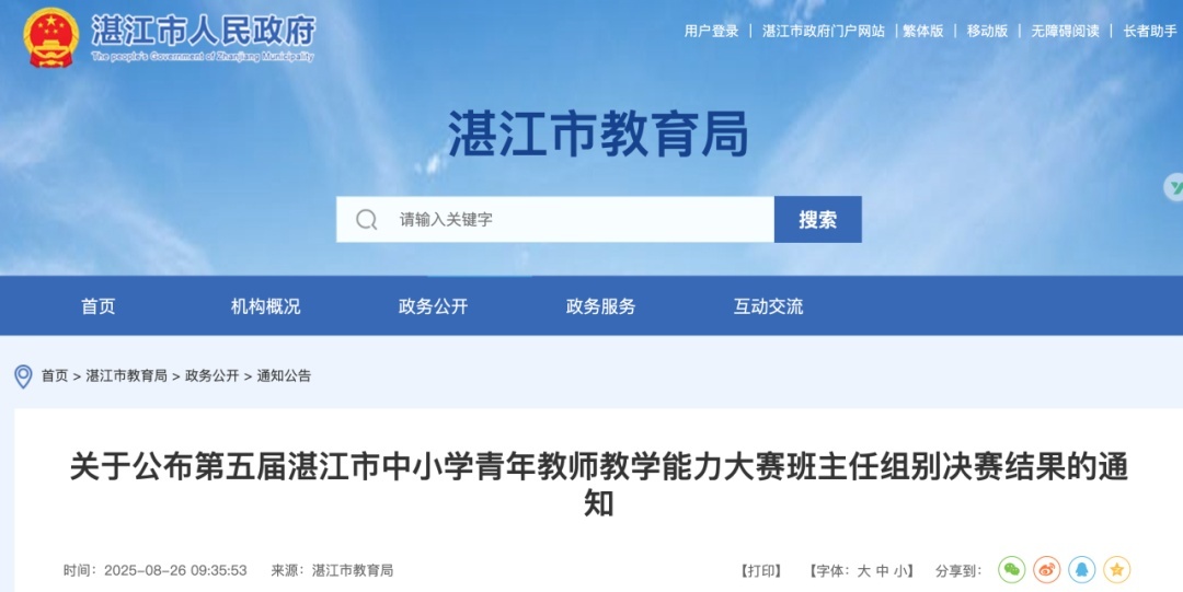 好消息!湛江市教育局公布第五届中小学青年教师教学能力大赛班主任组别决赛结果了!