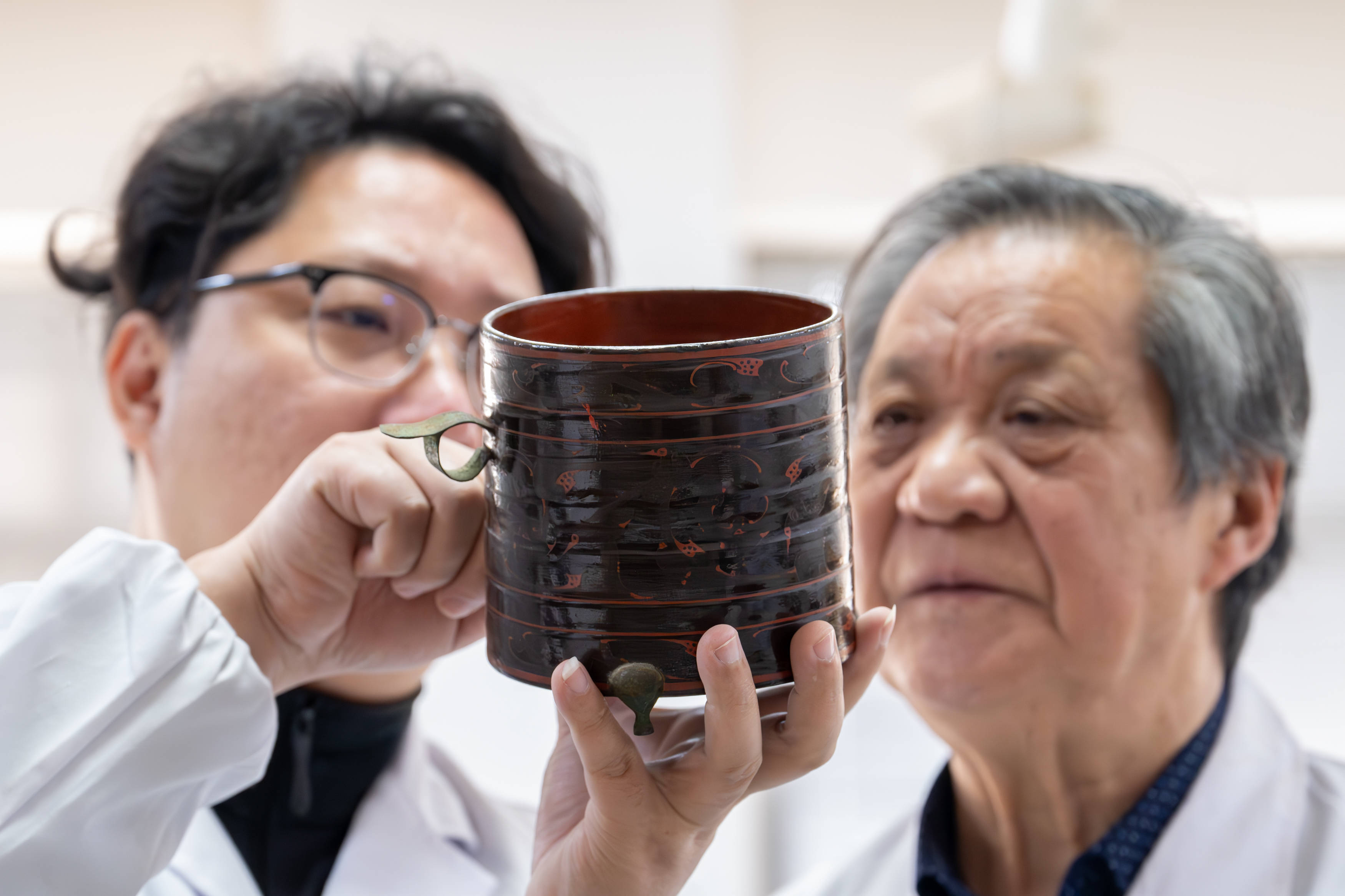 1月9日,在荆州文物保护中心,吴顺清(右)与吴昊在查看一只修复好的漆樽。新华社记者 杜子璇 摄回望半个世纪的耕耘,吴顺清直言“仍有遗憾”——一是荆州凤凰山167号墓发掘后清点文物时,打开包裹陶仓的黑布,里面金灿灿的稻谷迅速变得乌黑;二是荆州马山一号墓发掘时,揭开棺椁封板,顶部一根完整的绿油油的竹子,眼见着立马变黑断裂。